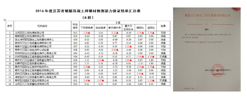 2016年度江蘇省鋼筋混凝土用鋼材檢測(cè)能力驗(yàn)證結(jié)果